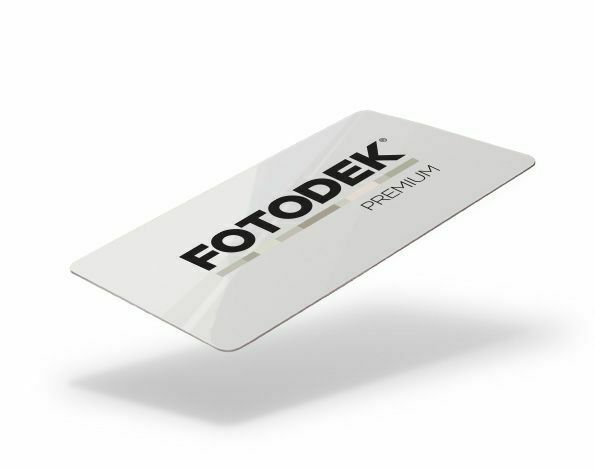 These FOTODEK Premium white 760 micron thickness cards have a 40% PET material core. This gives the card far greater rigidity and durability than a standard PVC material card.
