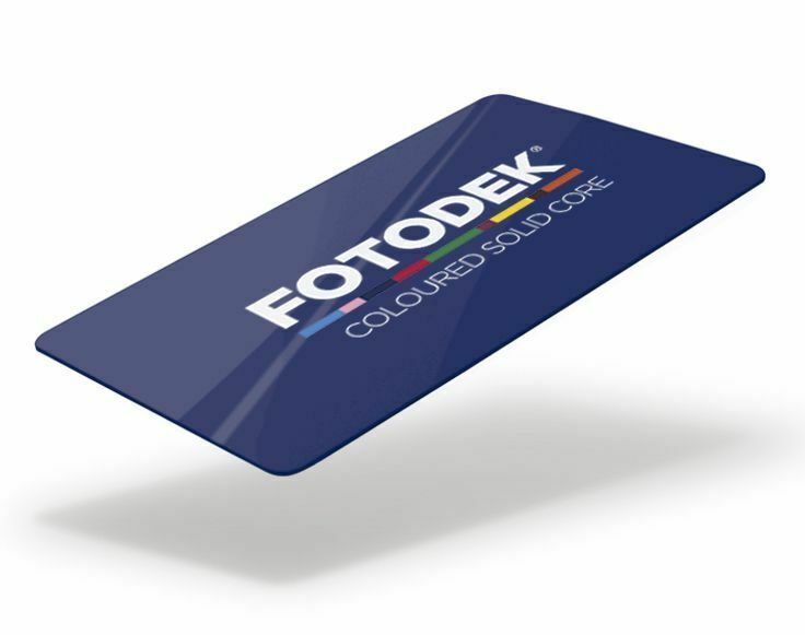 These FOTODEK ‘Twilight Blue’ plastic cards are the standard 760 micron thickness and have a solid coloured core, meaning the side edges of the cards are the same colour, providing a highly aesthetically pleasing look.